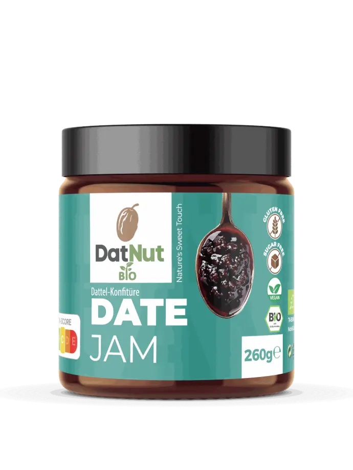 Bio-Dattelkonfitüre aus 100 % Deglet-Nour-Datteln – hergestellt aus reinem Dattelsirup und feinen Dattelstücken. Ohne raffinierten Zucker, ohne Konservierungsstoffe, ohne künstliche Aromen. Intensiver Geschmack, natürliche Süße, cremige Textur mit feinen Fruchtstücken – ideal für Handel, Gastronomie und Food-Produktion.